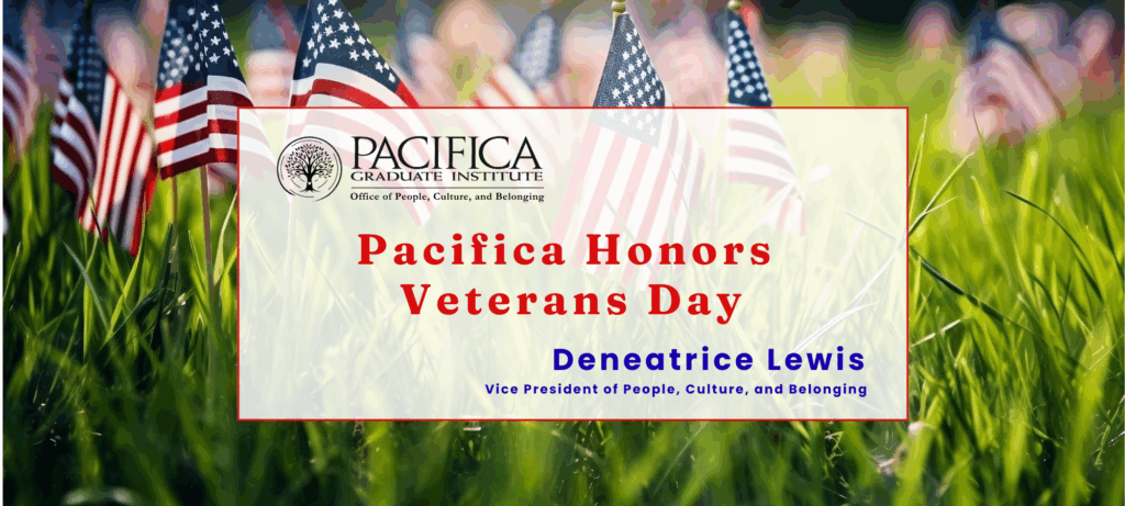 Pacifica honors Veterans Day. A letter by Deneatrice Lewis, Vice President of People, Culture, and Belonging at Pacifica Graduate Institute.
