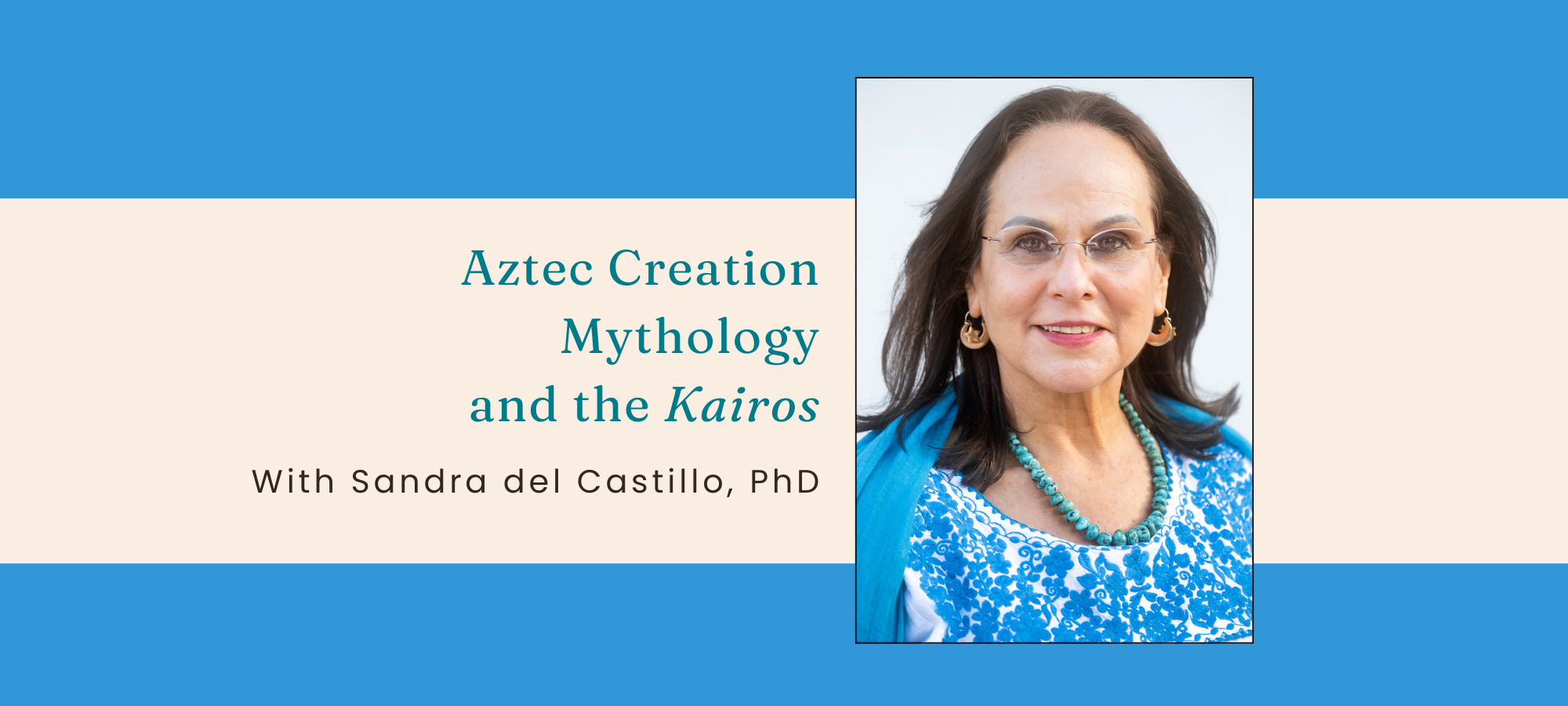 The Applied Mythology Graduate Certificate has some amazing teachers and topics, but one that really caught my attention was Sandra’s class on “Aztec Creation Mythology and the Kairos,” in part because I don’t often see Aztec myths mentioned in works on depth psychology. Sandra is using the Aztec creation myth “Five Suns” in her course, so I asked her how this pairs well with archetypal thinking and Jung. She began by pointing out that “Jungian depth psychology is mythologically informed. The stories of myth are living blueprints, and mythic figures are styles and qualities of consciousness; when invoked, they guide, give meaning, and bring order to the inner chaos and its outward expressions. This is true both personally and as a collective.” She explained that “The Aztec creation myth of the Five Suns, is the living blueprint we use in this module, to navigate this collective crossroads for humanity. The Five Suns tells the story of the rise and fall of five Sun ages, of the sun gods who ruled over each, each with their distinct worldviews and forms of consciousness, and of the metamorphosis of the humans through each Sun. As our Anthropocene era and human-centric worldview faces its own fall, and Sixth Great Extinction, we turn to the ancient and archetypal ensouled worldviews for wisdom, exploring the anima mundi–the soul of the world, mirrored in the Mesoamerican cosmovision.”